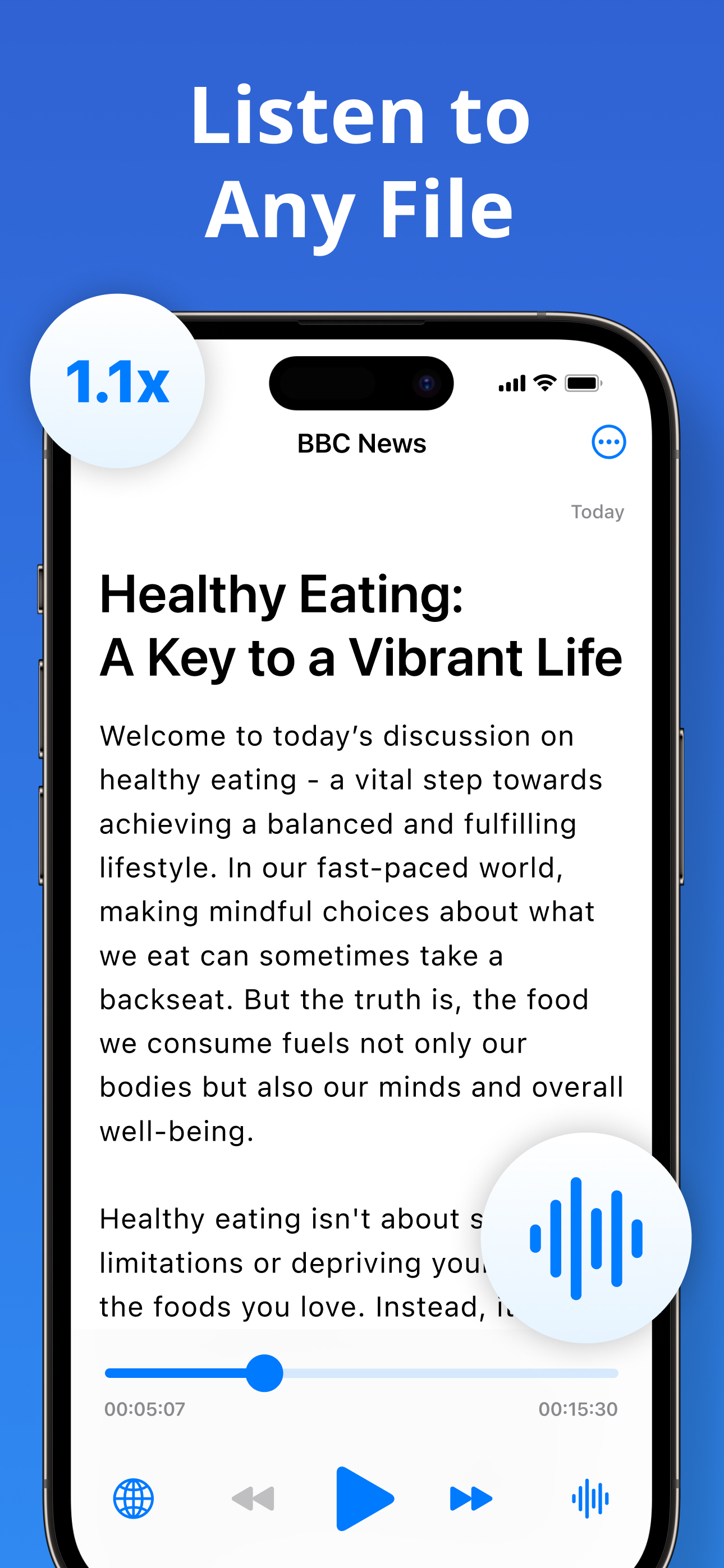 Convert text documents into natural audio instantly