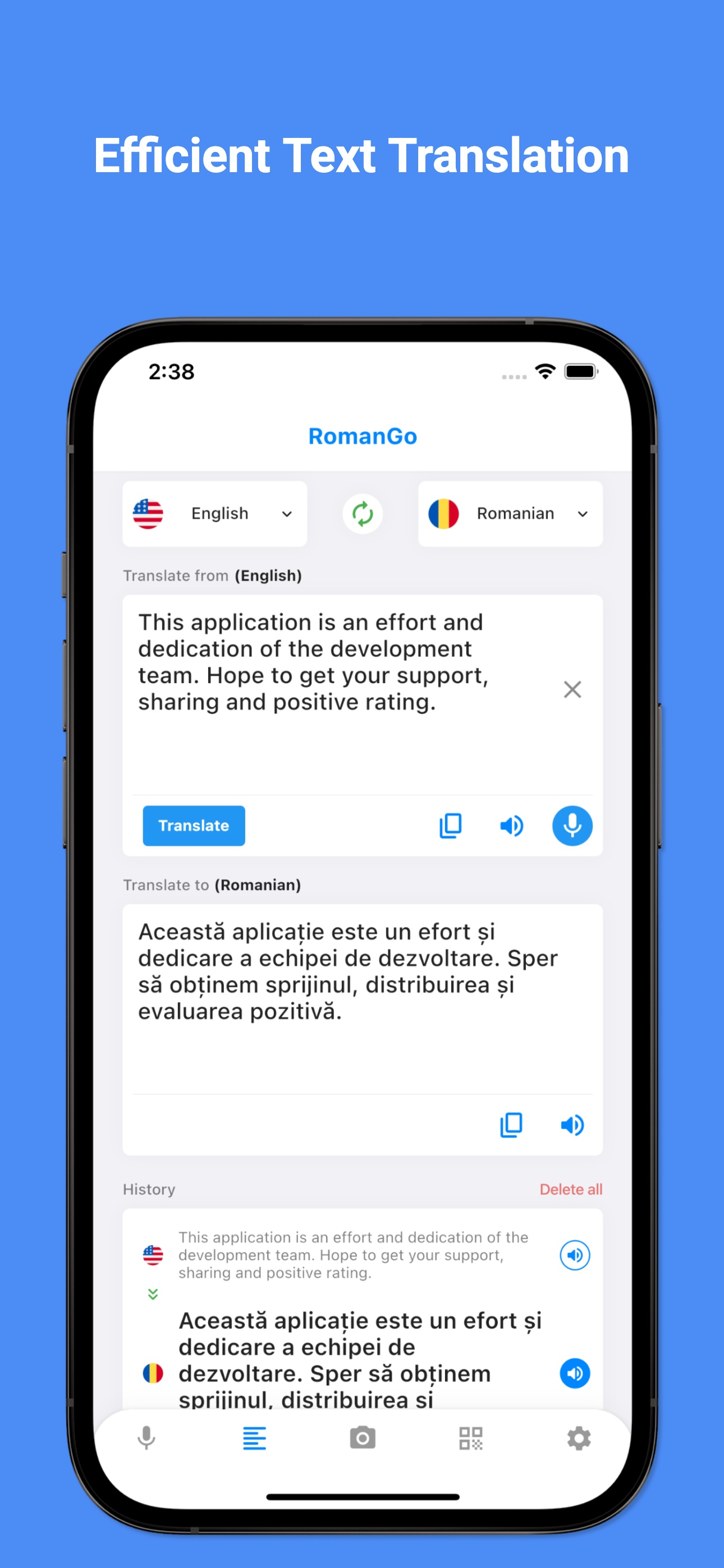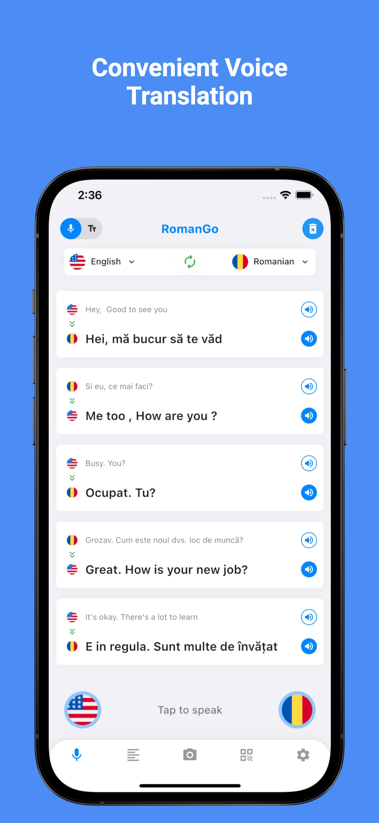 Translate voice, text, and photos to Romanian