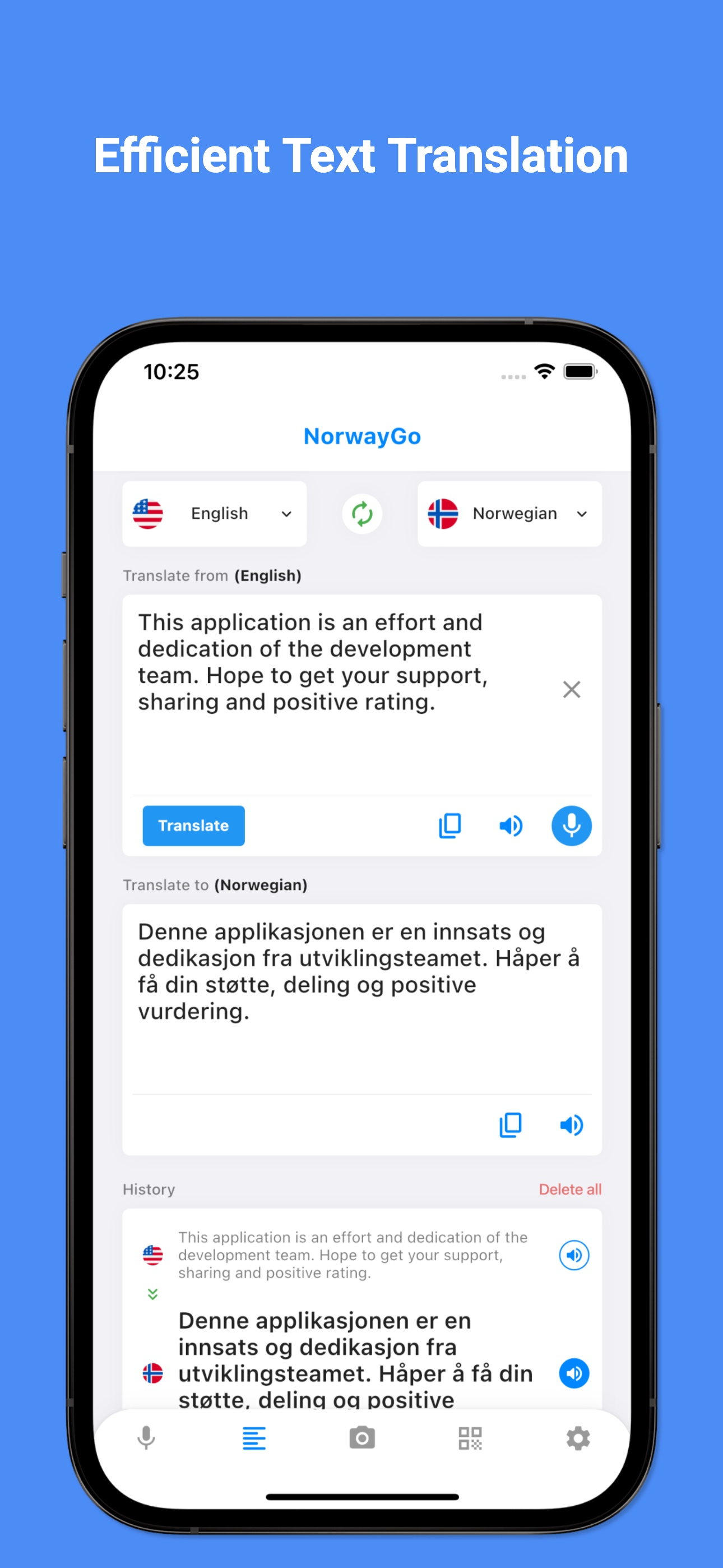 Translate voice, text, and photos to Norwegian
