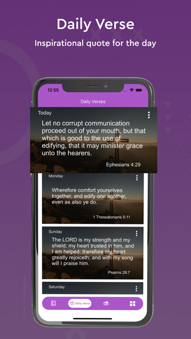 Read, listen, and quiz on the Bible.