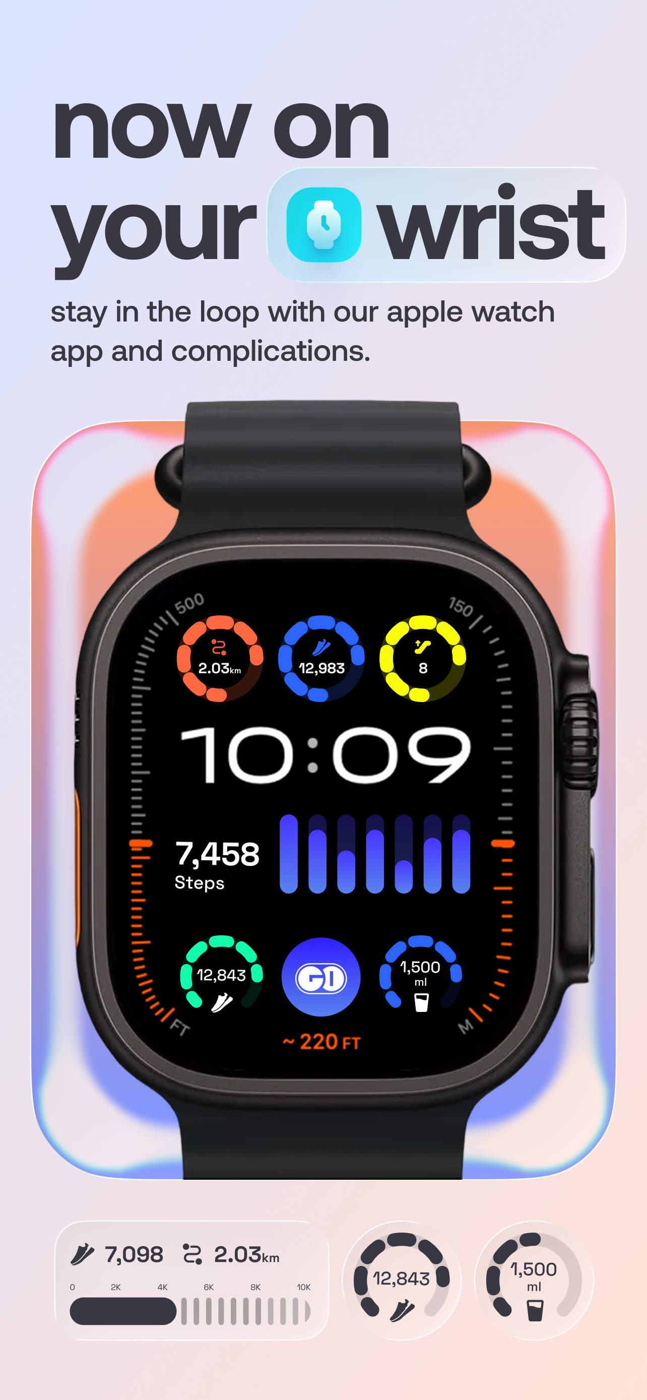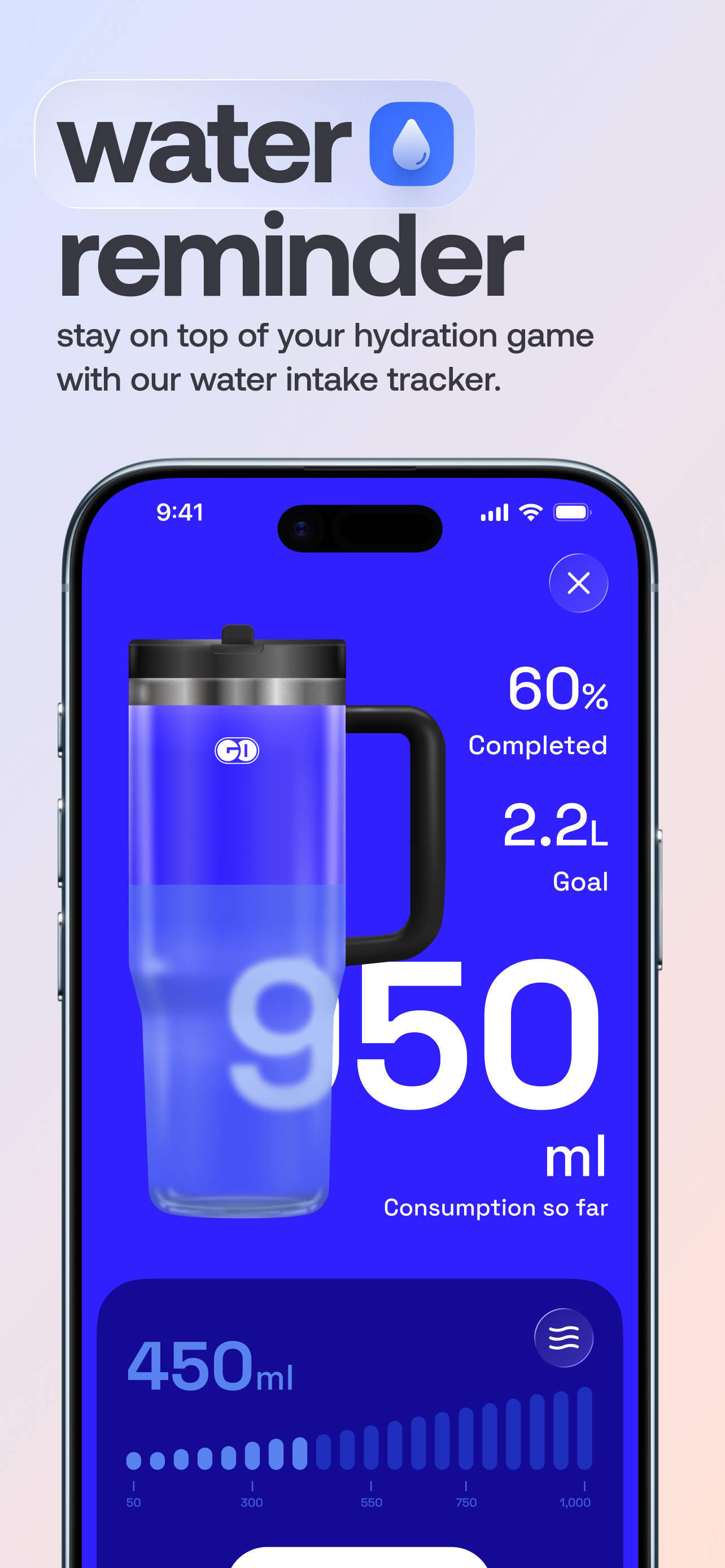 Step counter and hydration reminder app.