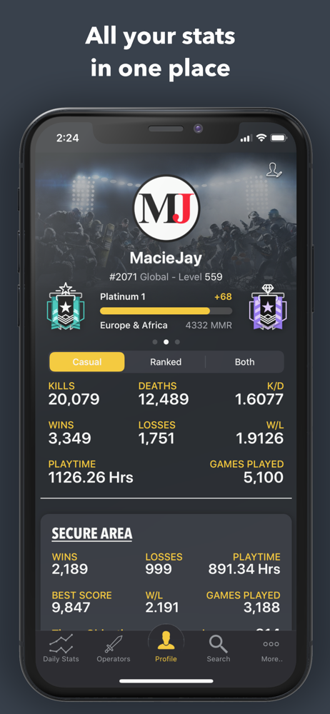 Track and compare Rainbow Six Siege stats.