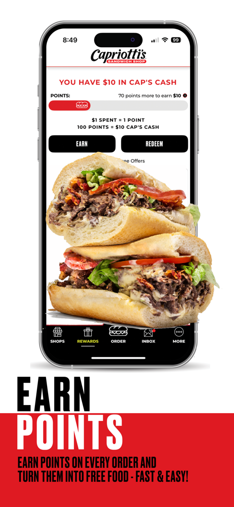 Earn rewards and order Capriotti's food.