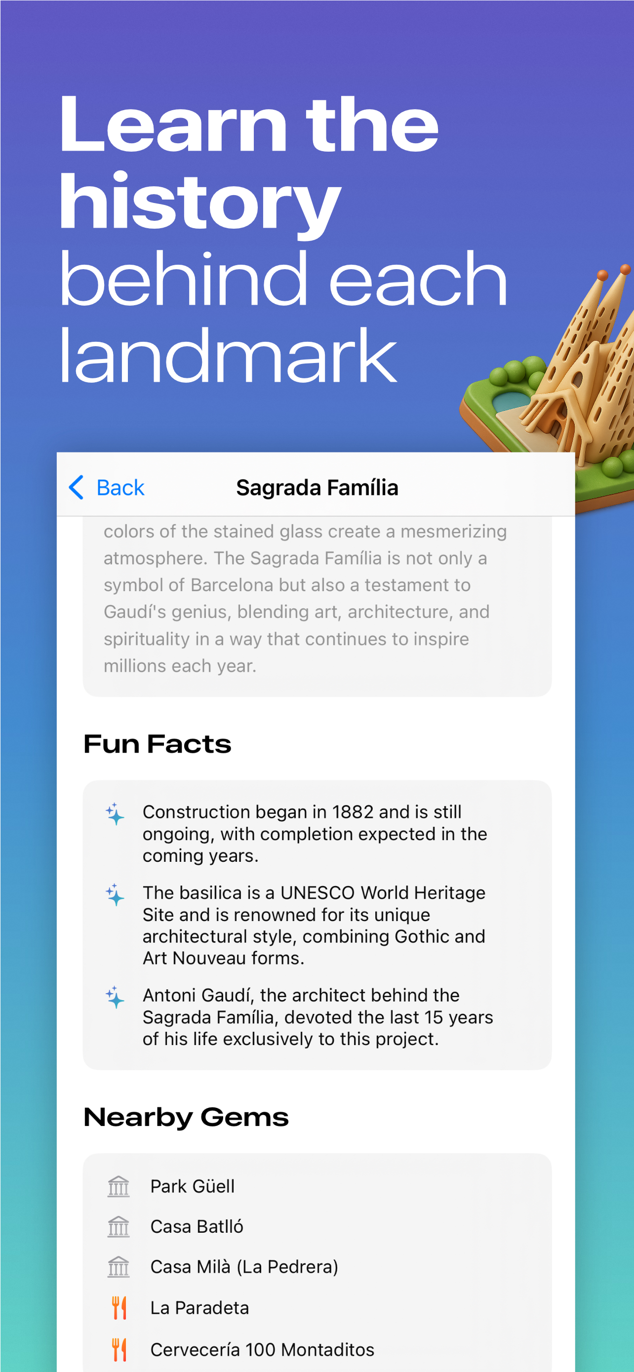 Identify landmarks, learn history, track discoveries.