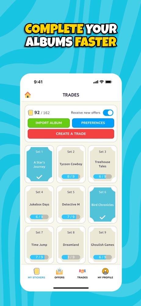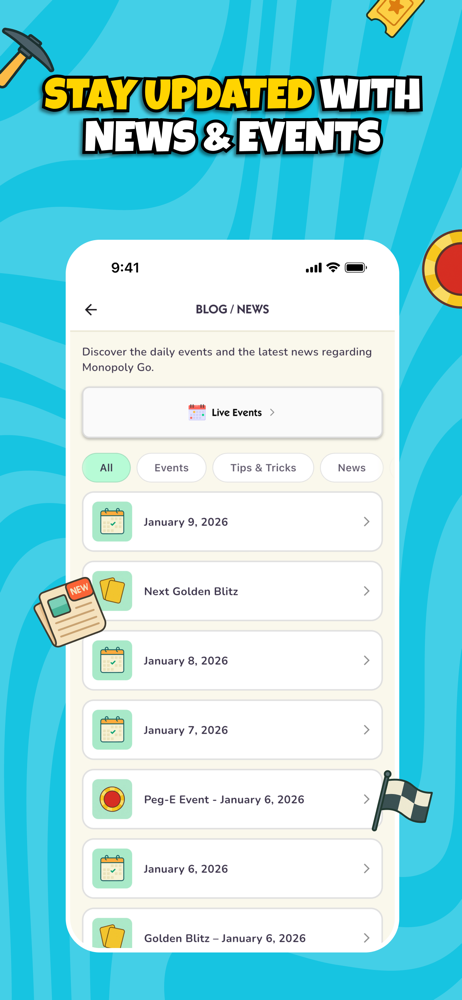 Collect rewards, trade cards, track events.