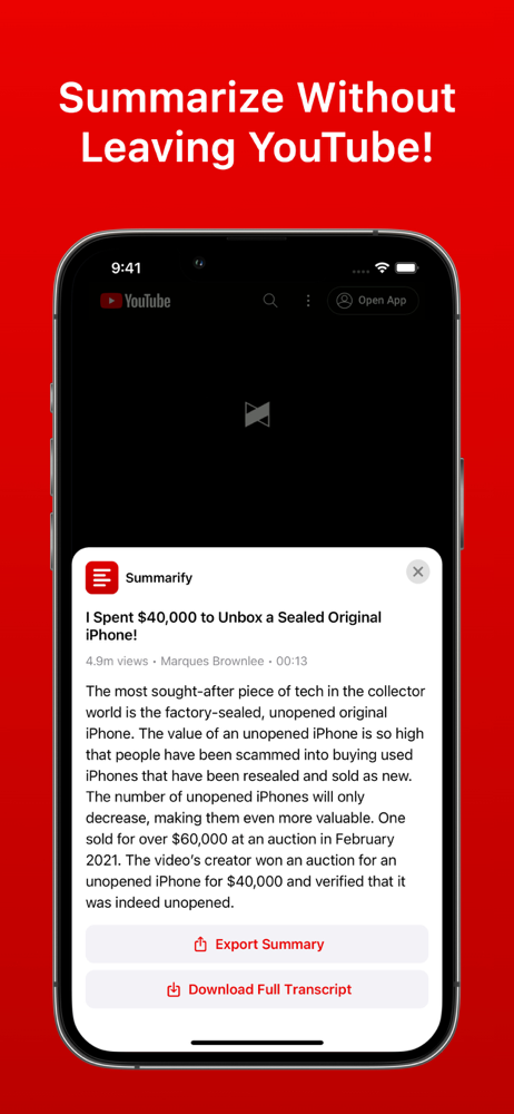 AI-generated summaries for YouTube videos.