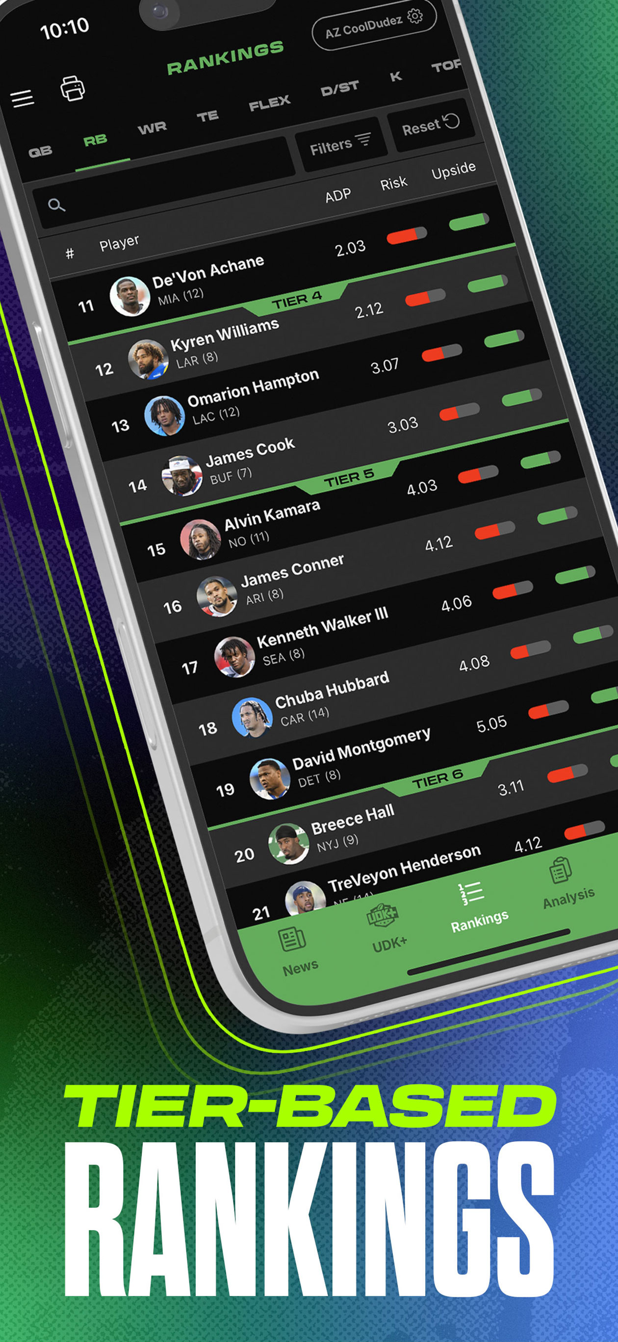 Fantasy football rankings, tools, advice, podcasts.