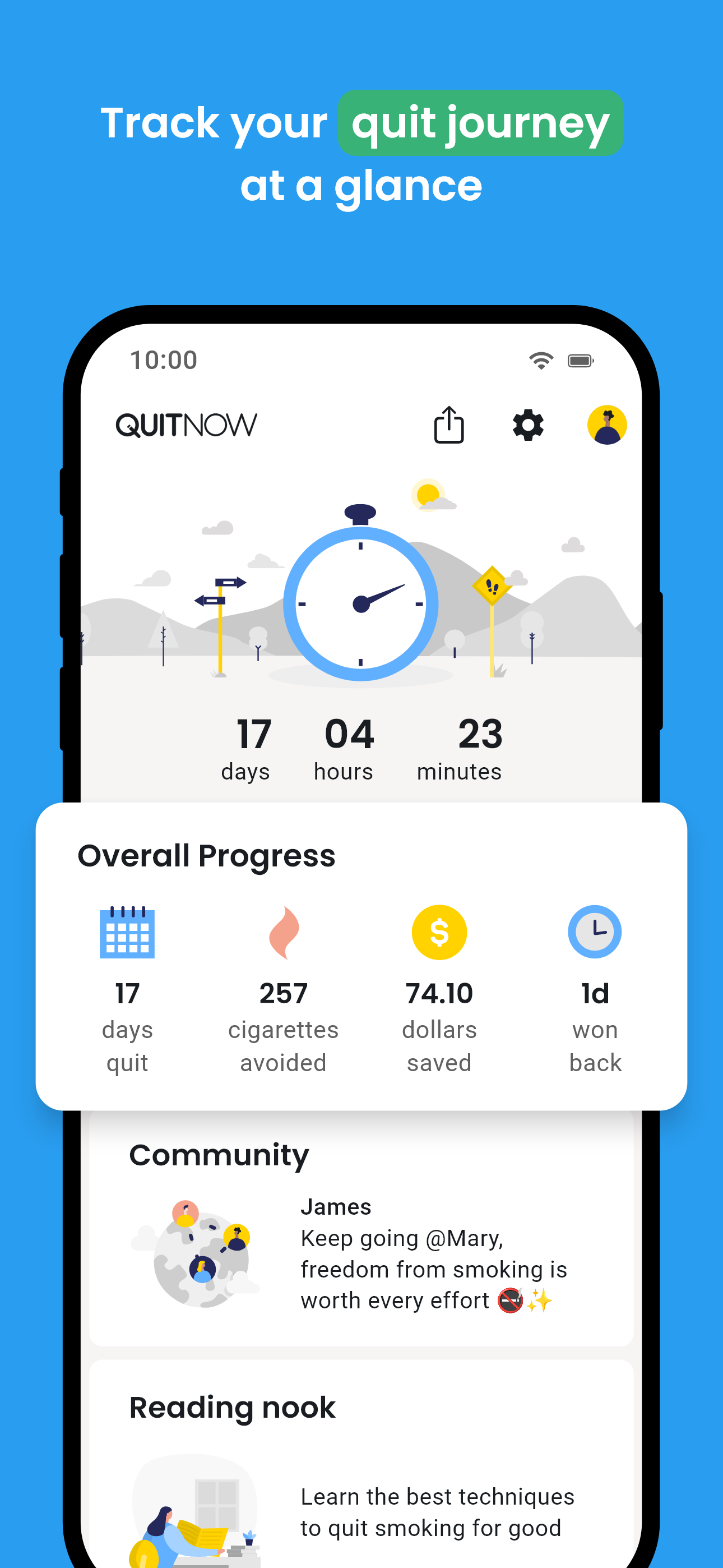 Motivates and supports quitting smoking journey.