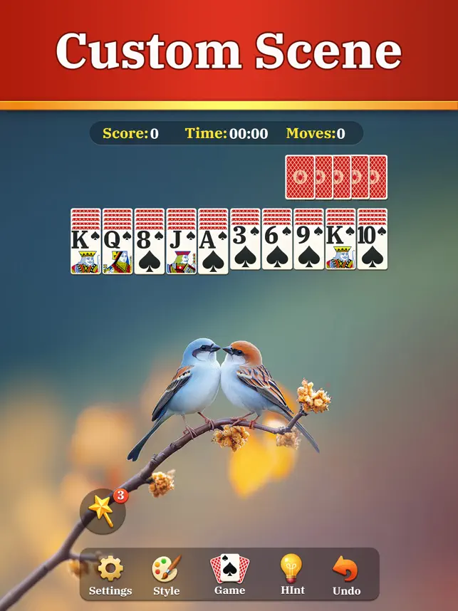Classic solitaire with customizable themes.