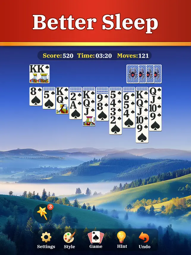 Relaxing offline Spider Solitaire with mindfulness.