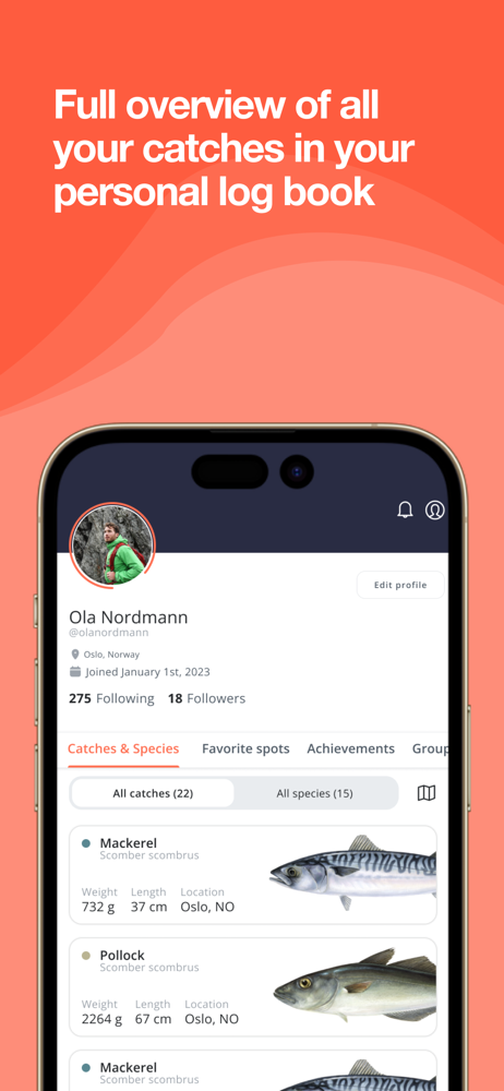 Find fishing spots and log catches easily