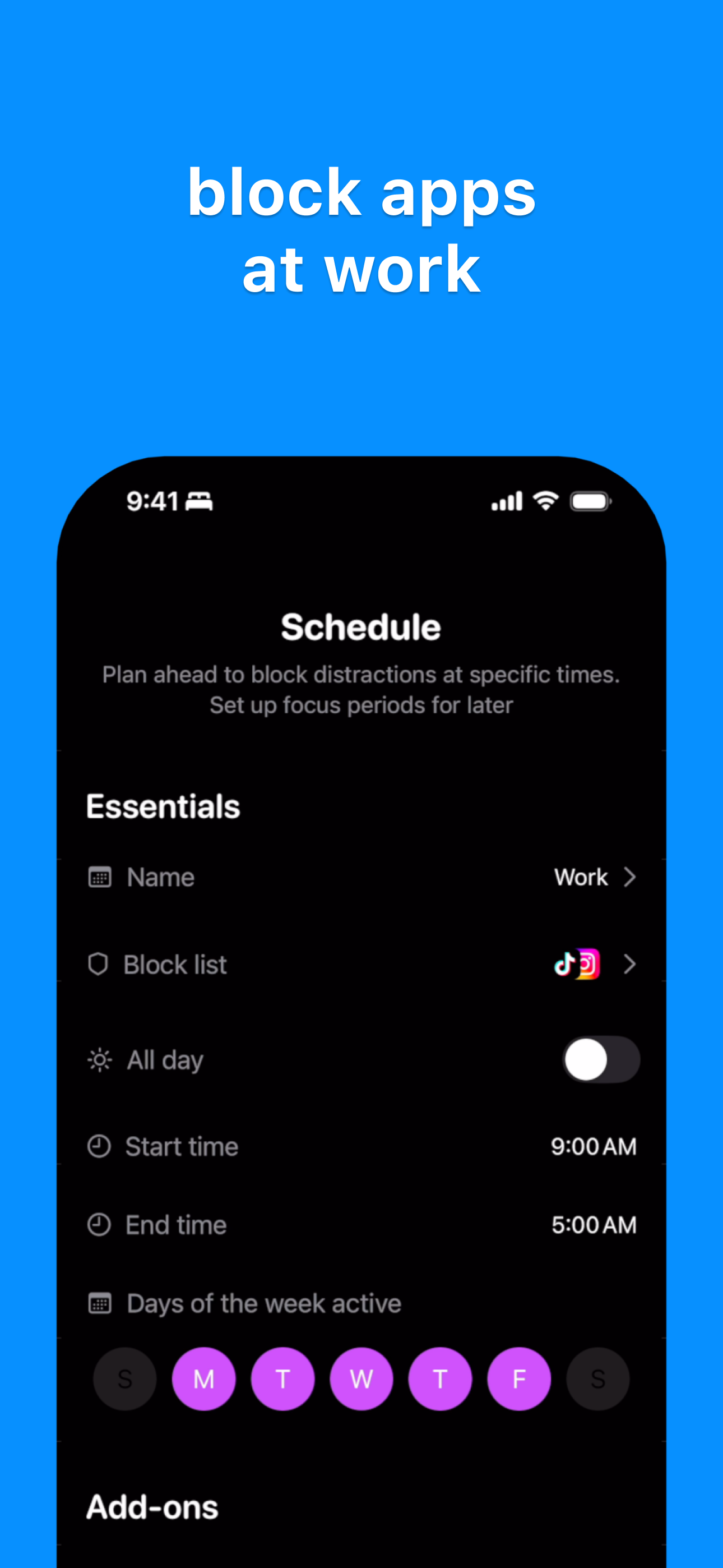 Manage screen time and block distracting apps