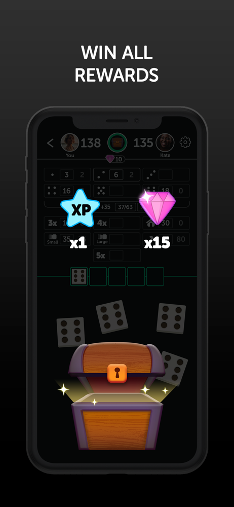 Multiplayer dice game with tournaments, rewards.