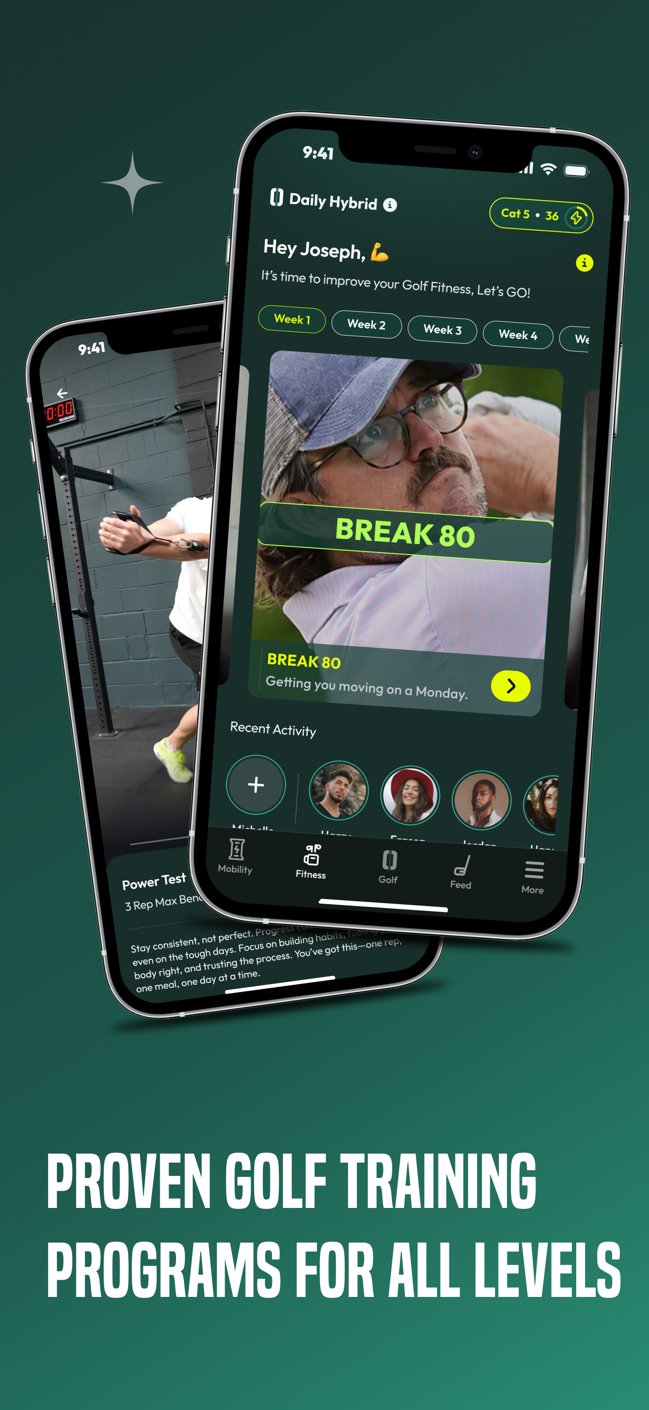 Golf-specific fitness training and progress tracking.