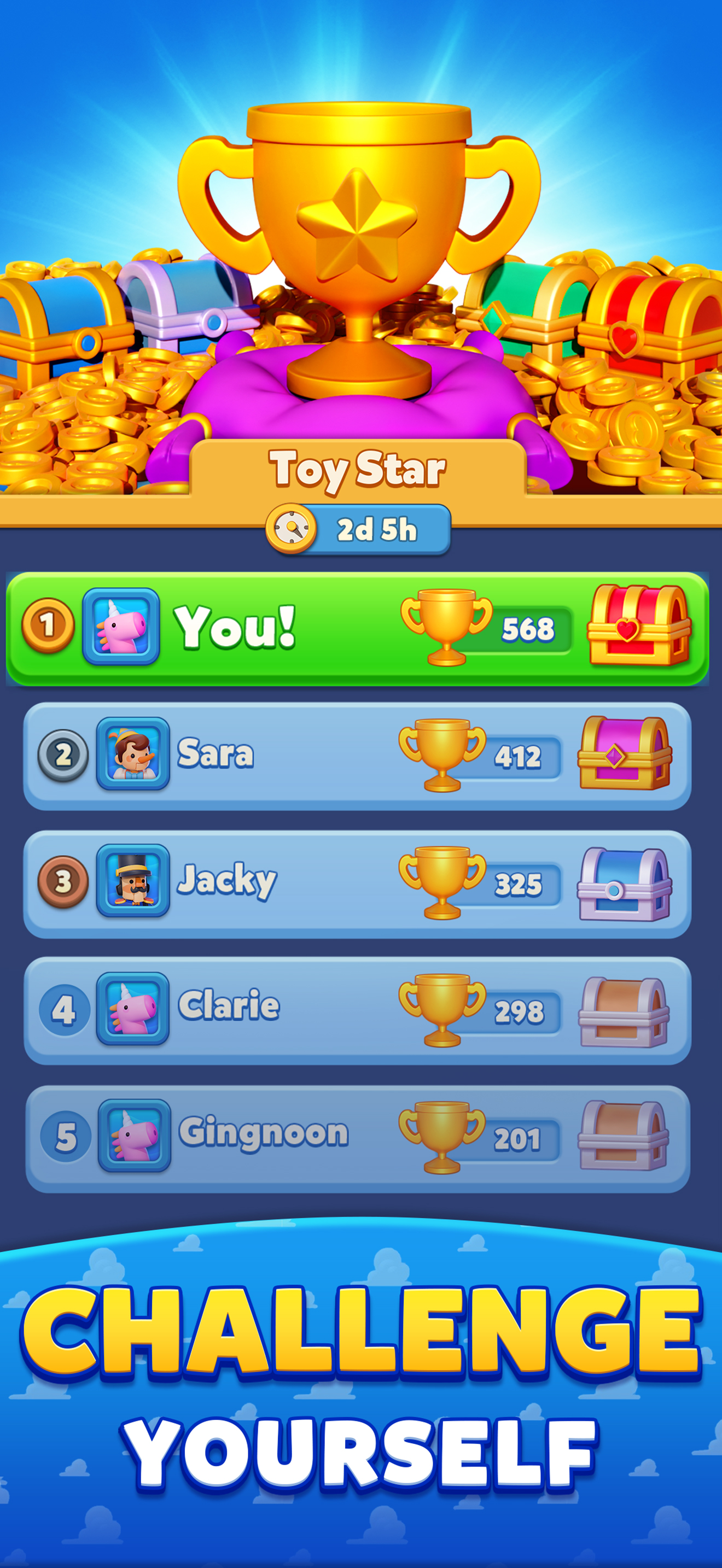 Match 3D toys in timed puzzle challenges.
