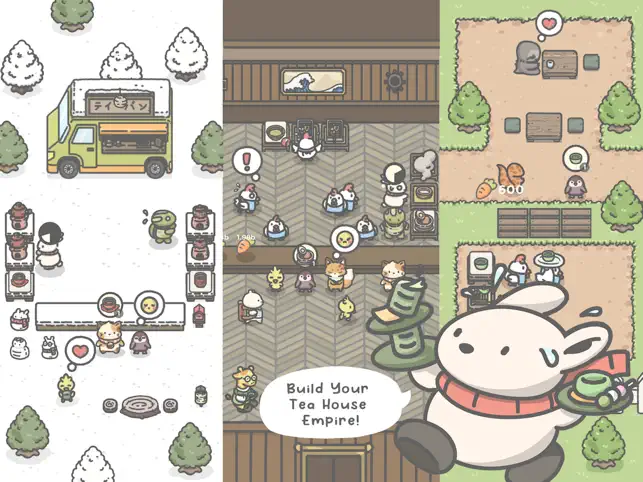 Manage tea house, serve customers, upgrade decor.