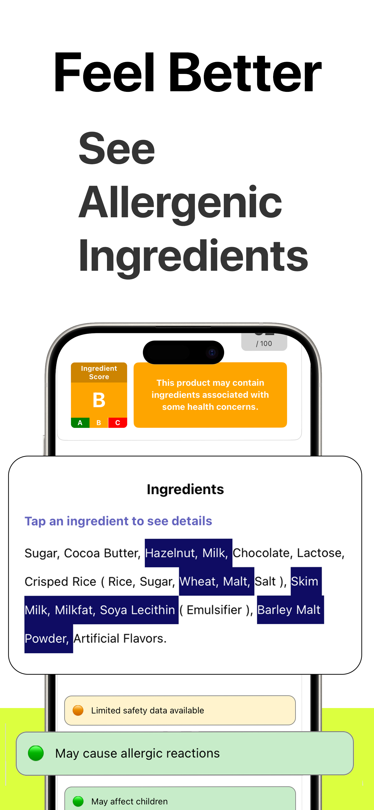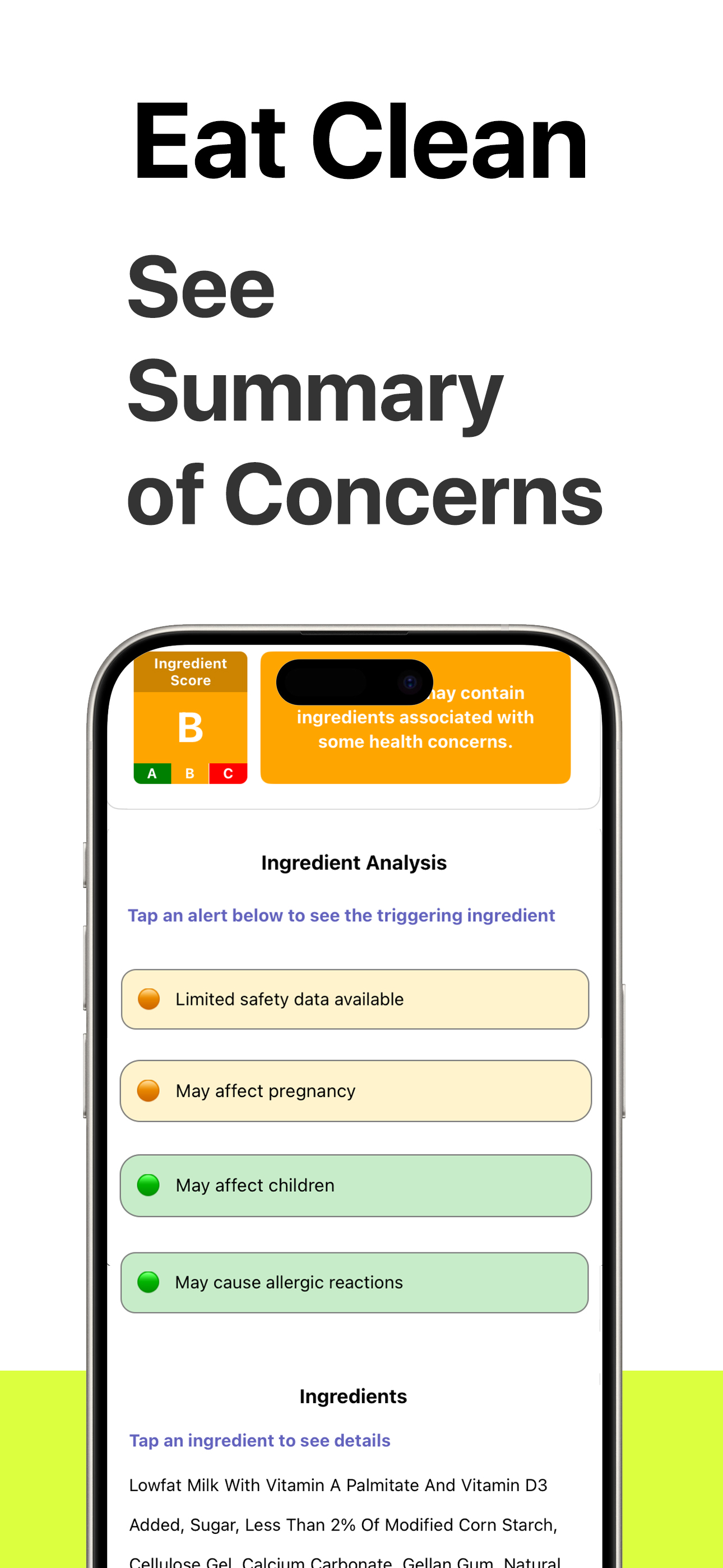 Scan food labels for ingredient safety insights.