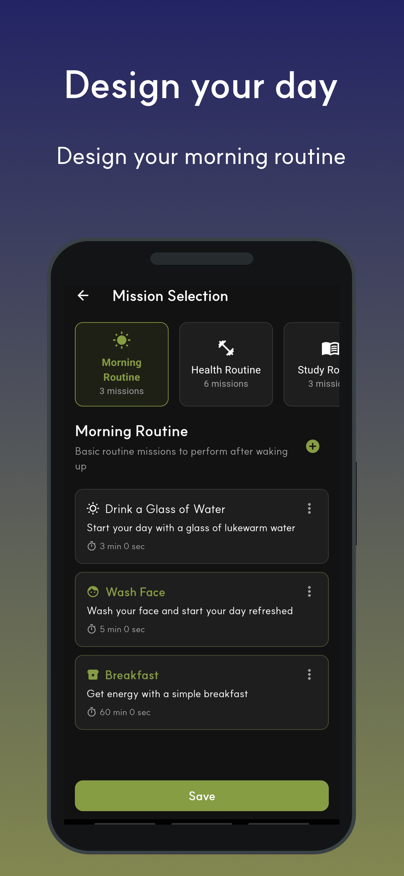 Mission-based alarm app for building routines