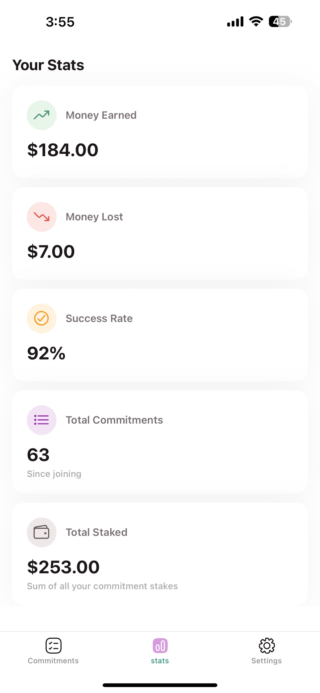 Fitness accountability app with financial incentives.