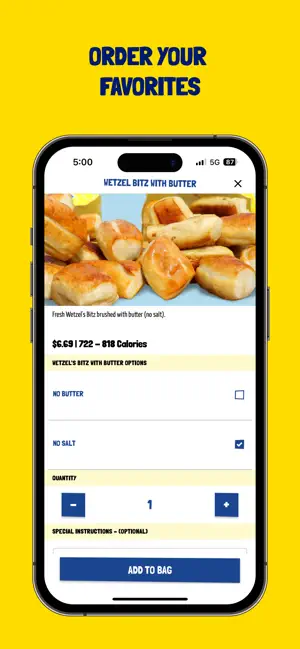 Earn rewards and order Wetzel's Pretzels online.