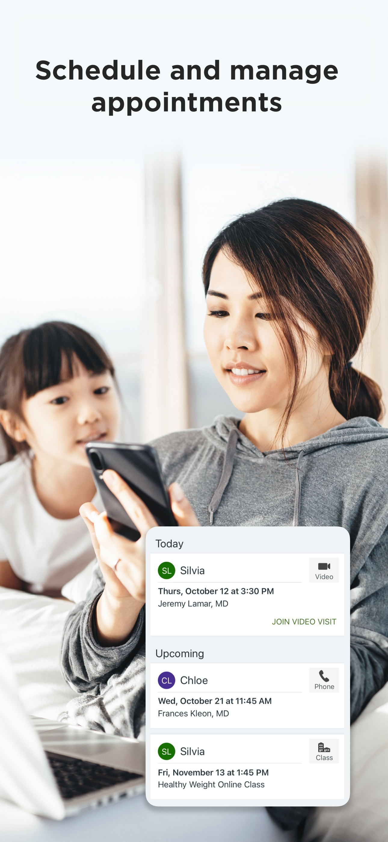 Manage family health and appointments conveniently.