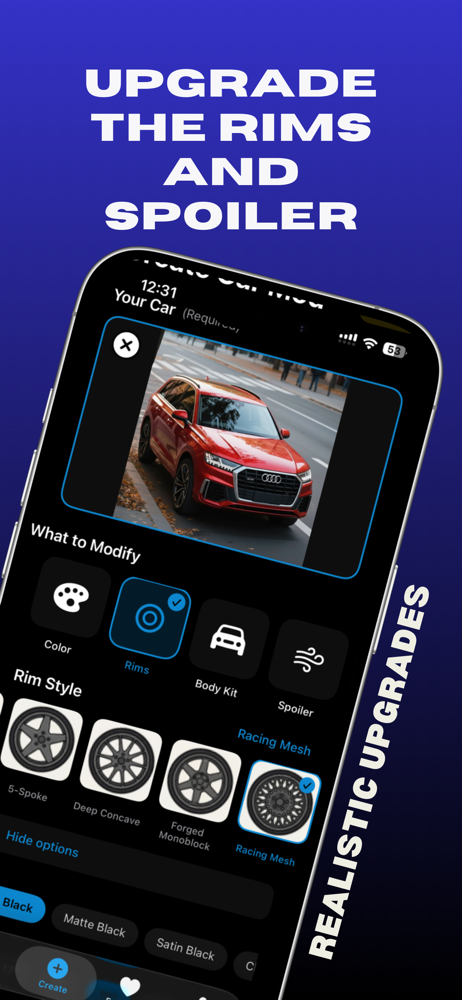 Visualize and customize car modifications instantly.