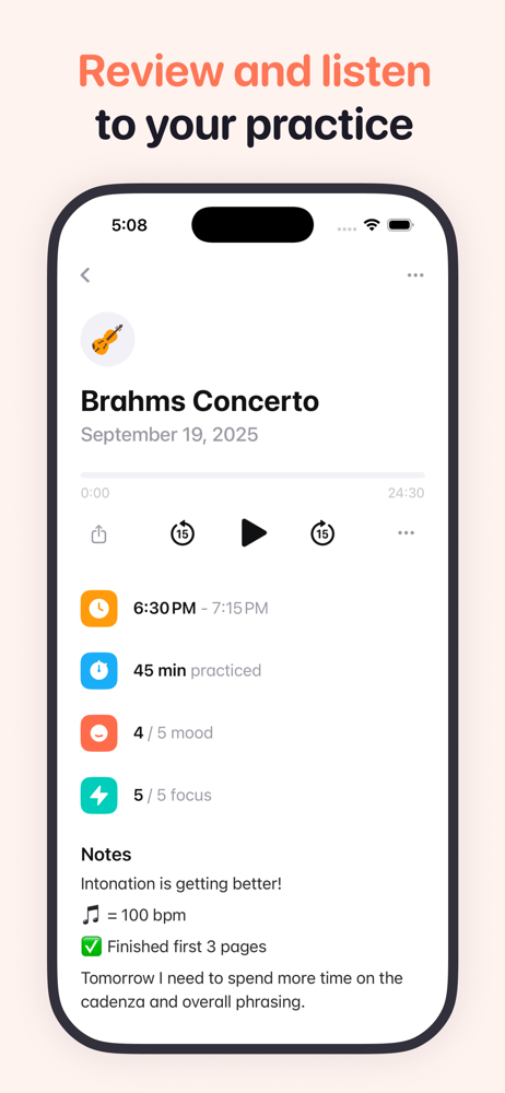 Track practice sessions and build musical habits