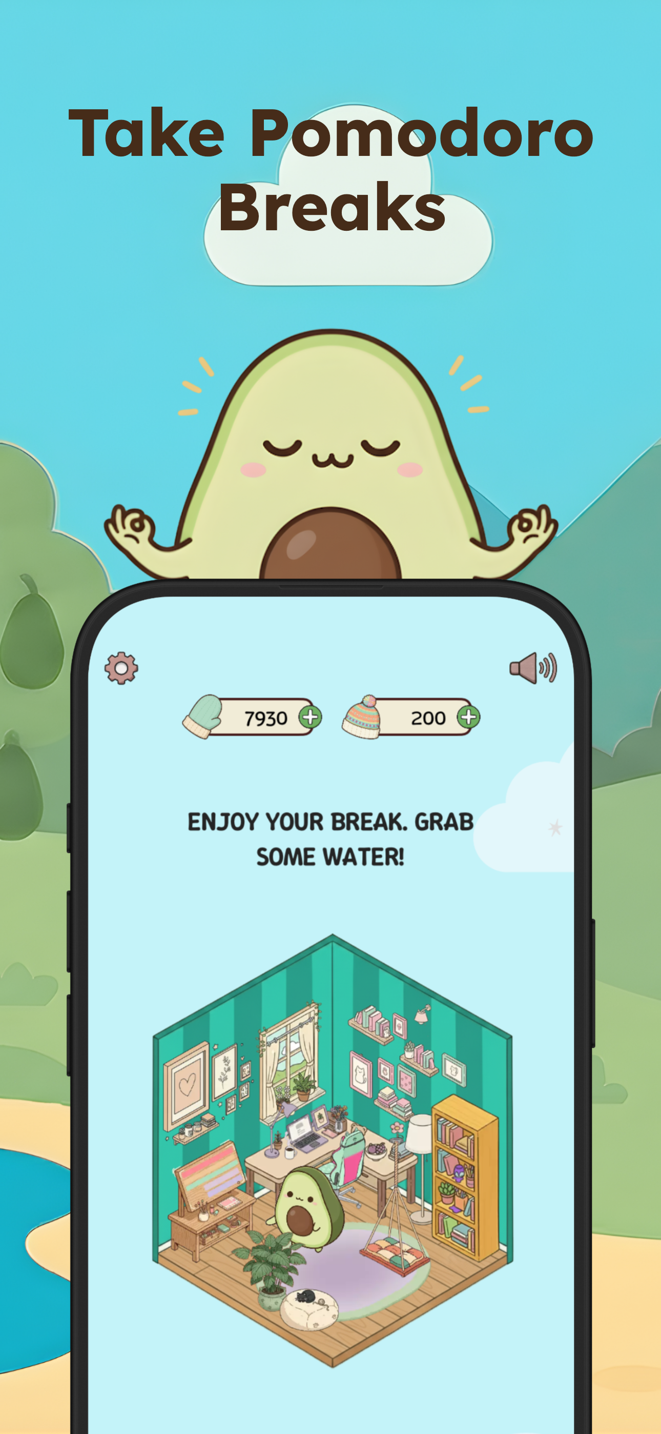 Focus timer with knitting rewards for concentration