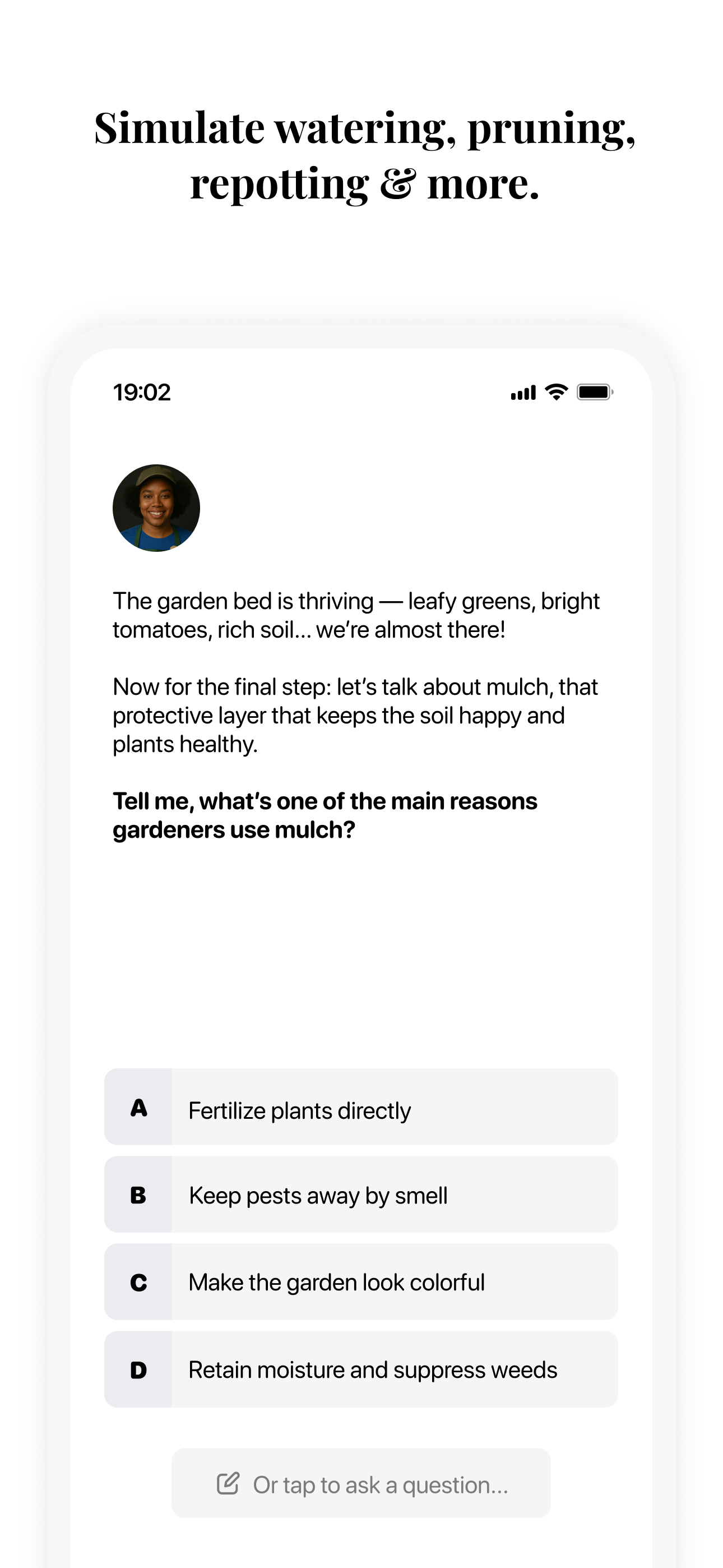 Interactive gardening simulations for skill mastery