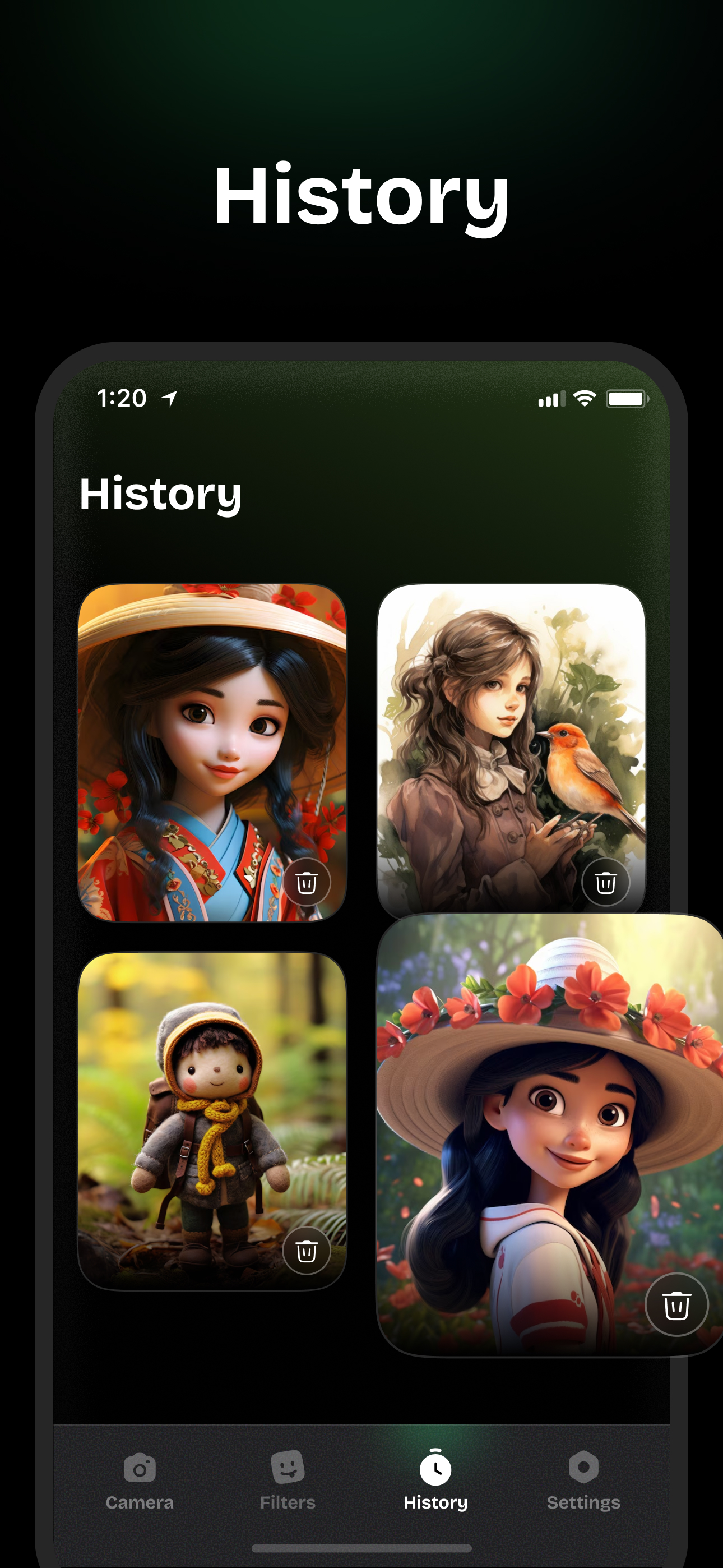 Transform photos with 50+ AI filters.