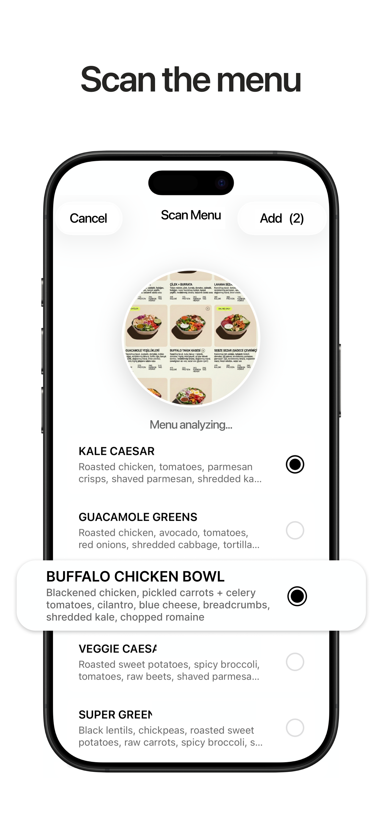 Type meals to track calories and macros.