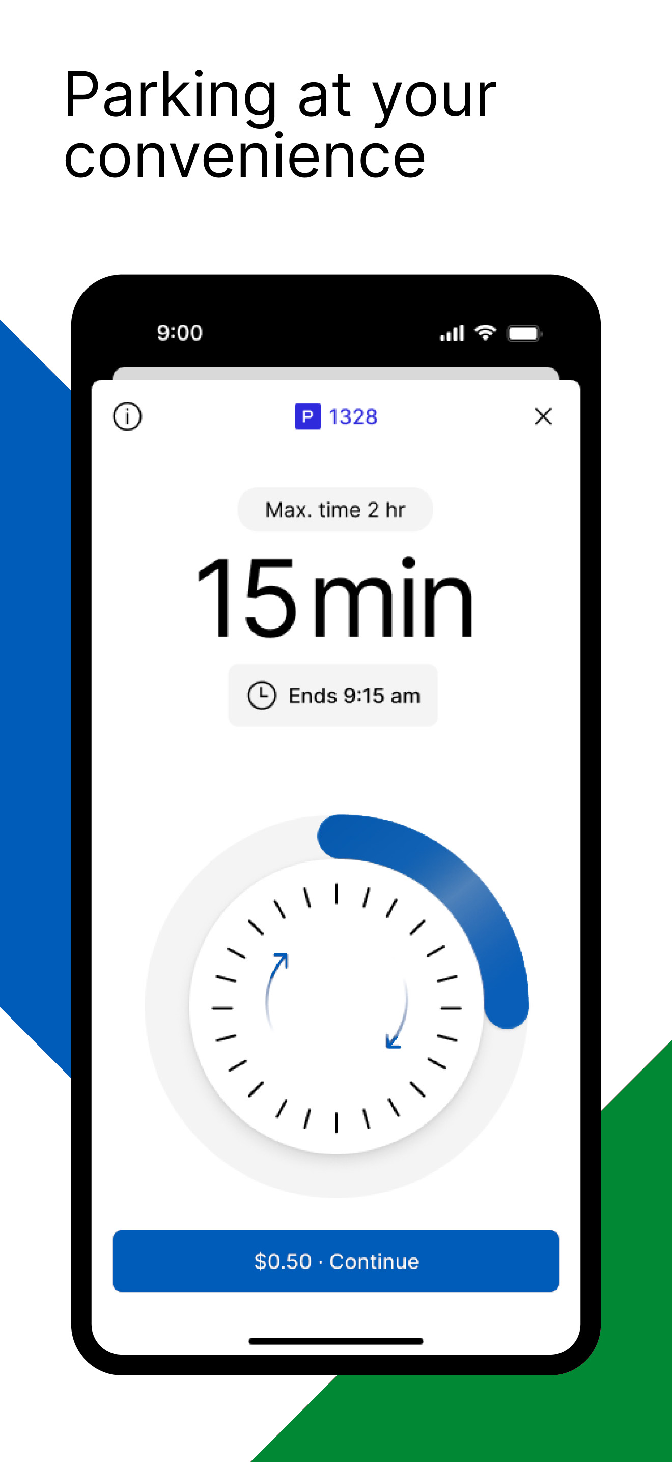 Mobile app for parking payments and reservations.
