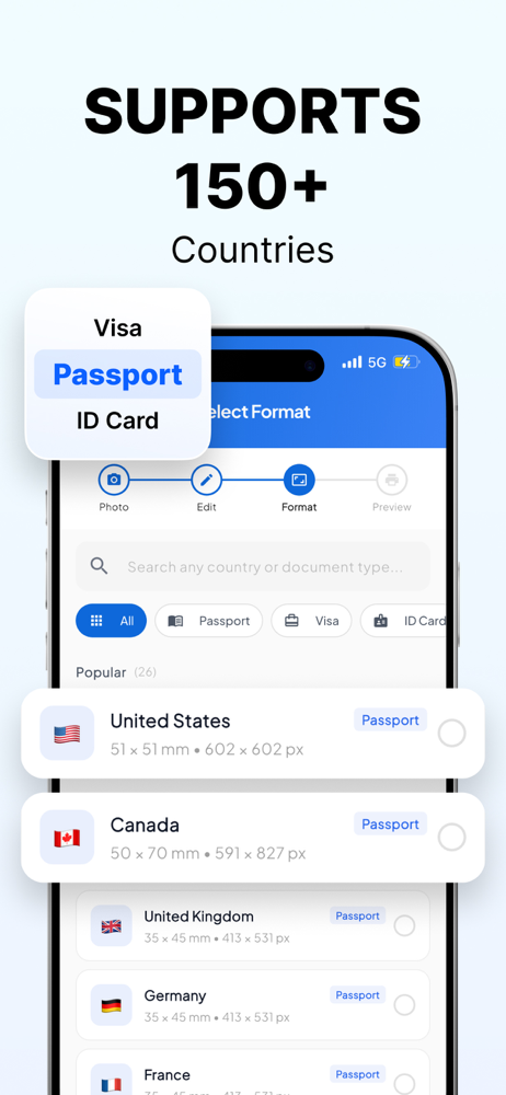 Create and edit passport photos easily.