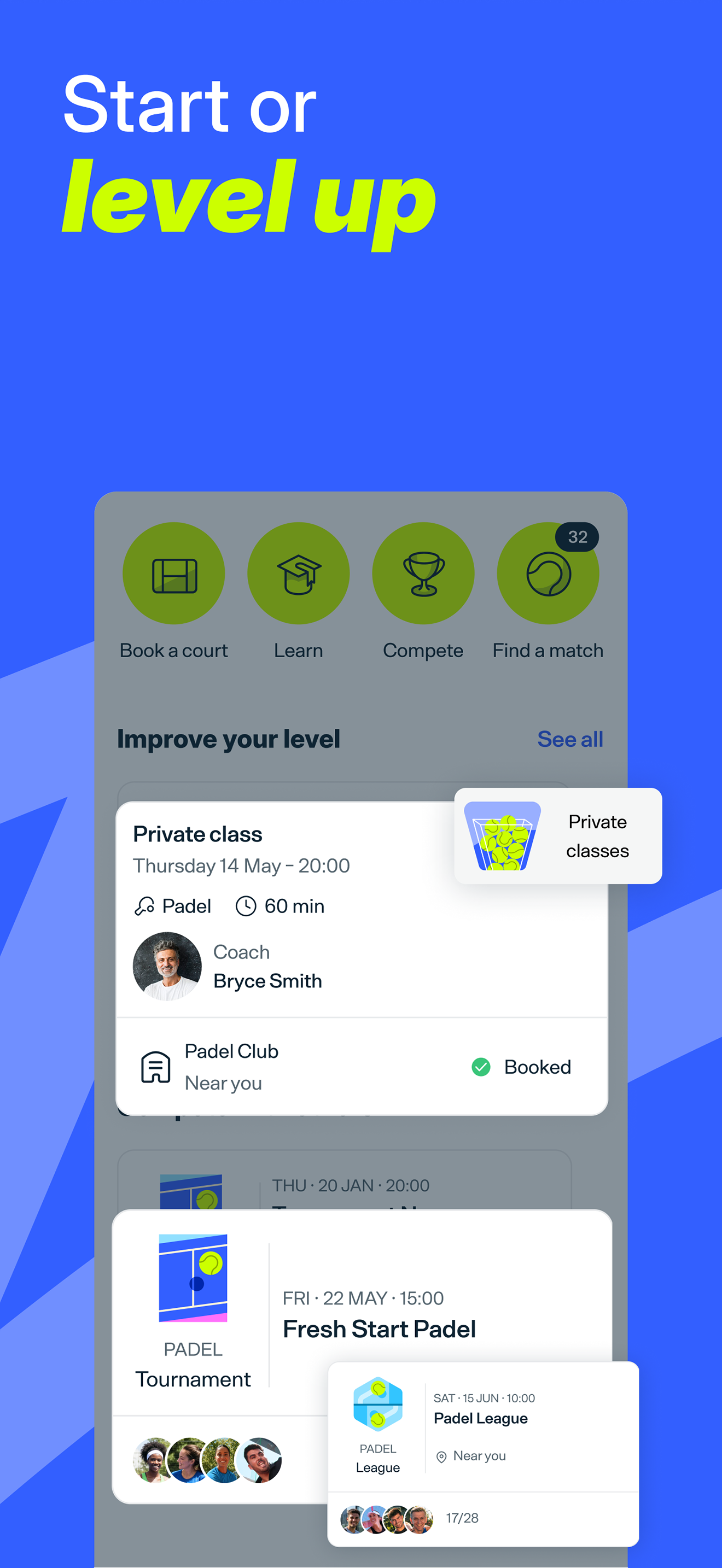 Connect with players, book courts, join matches.