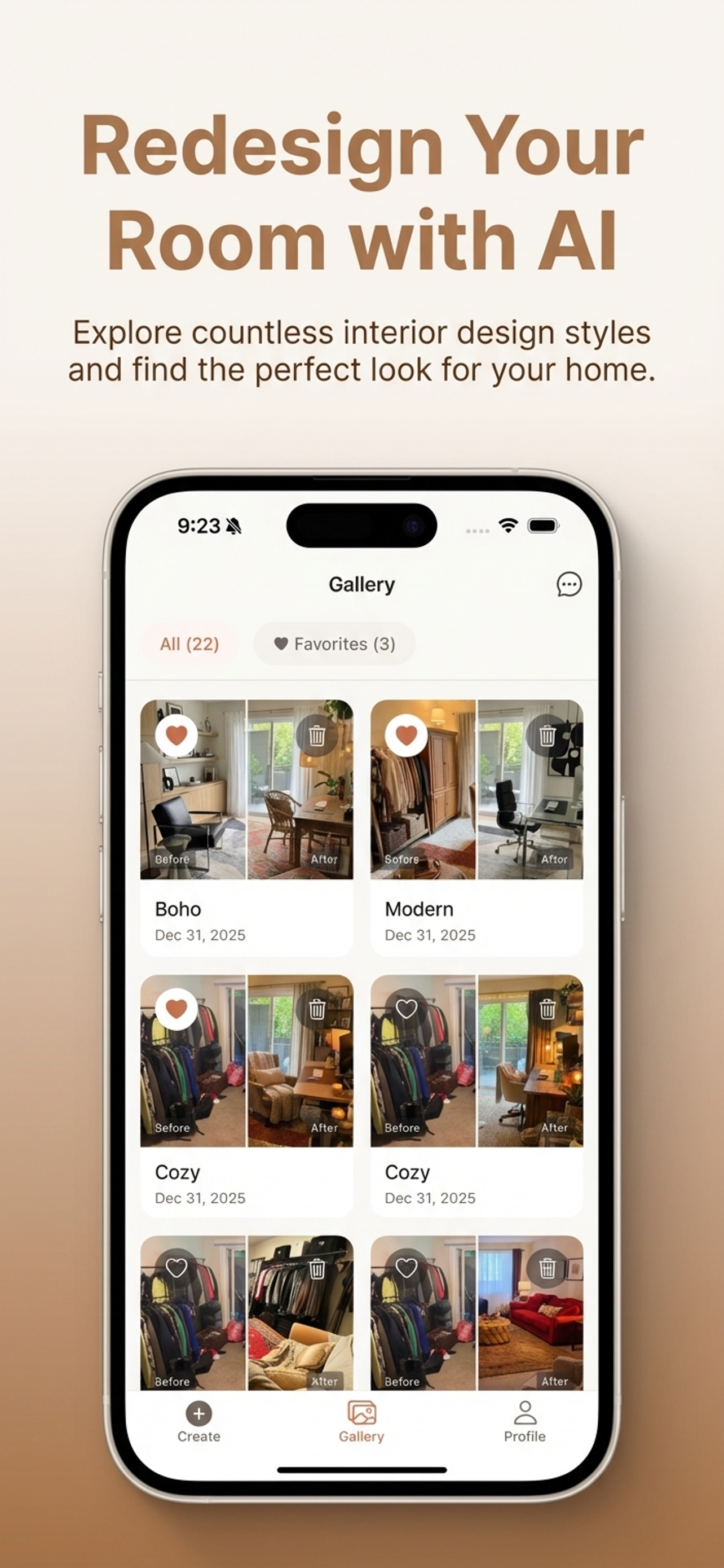 AI interior design transformations from photos