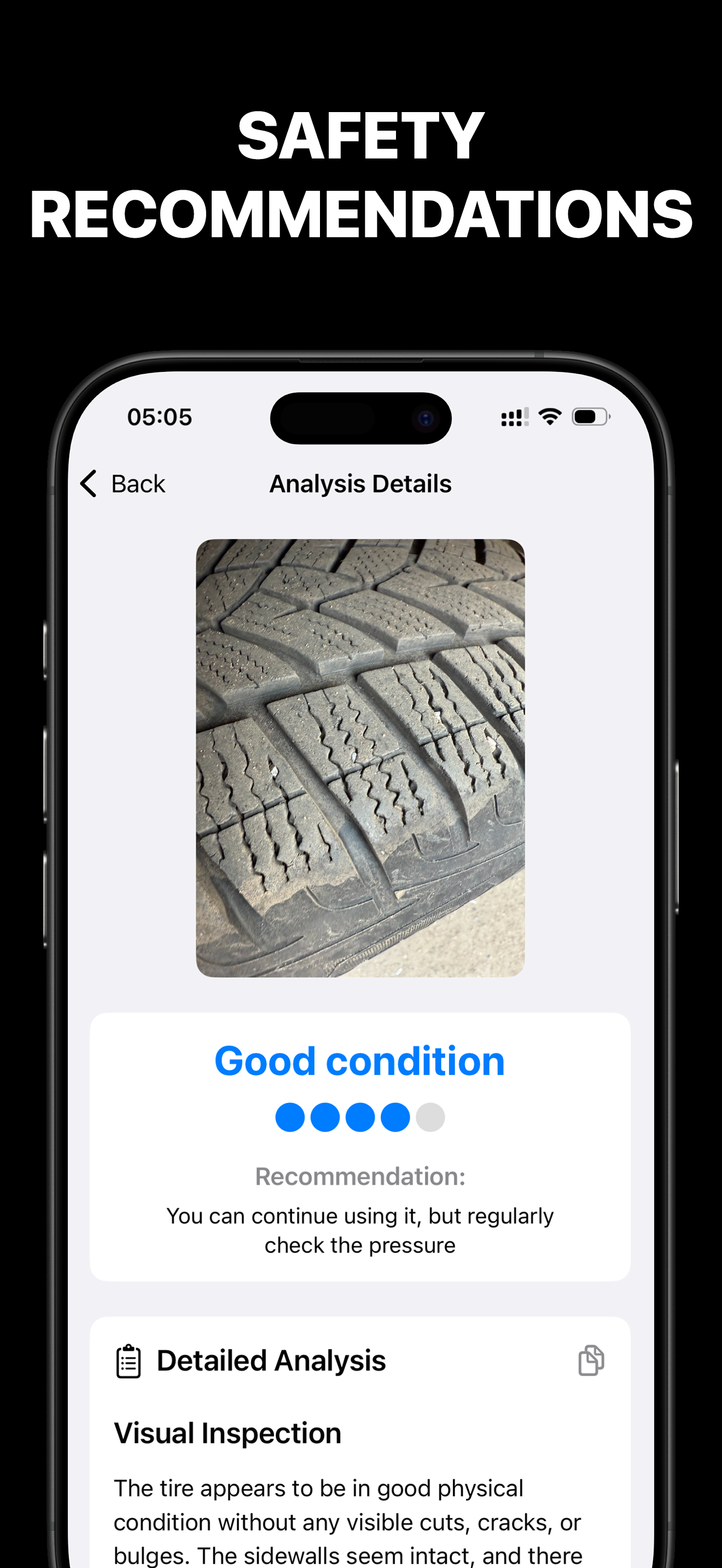 Instant AI tire condition assessment and recommendations