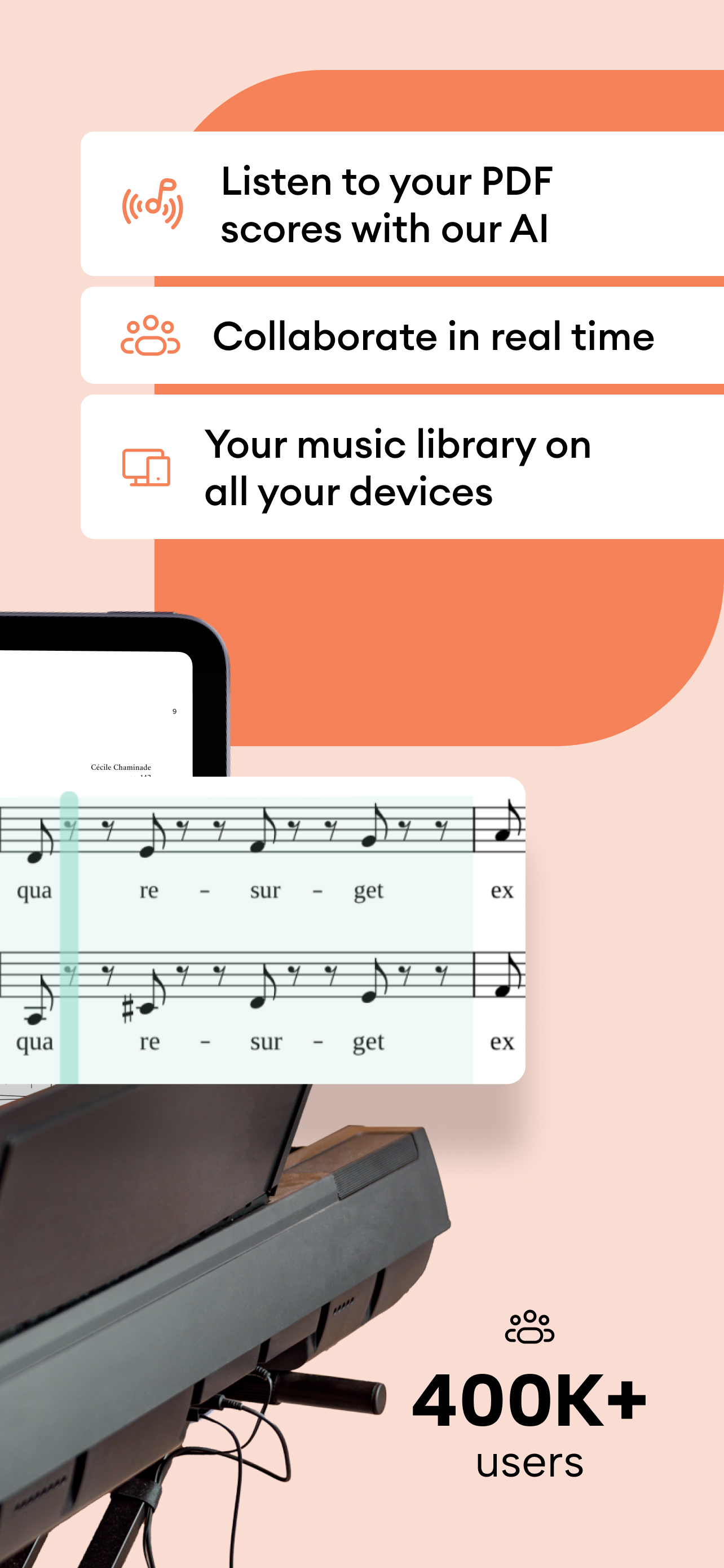 Digital sheet music reader with collaboration tools.