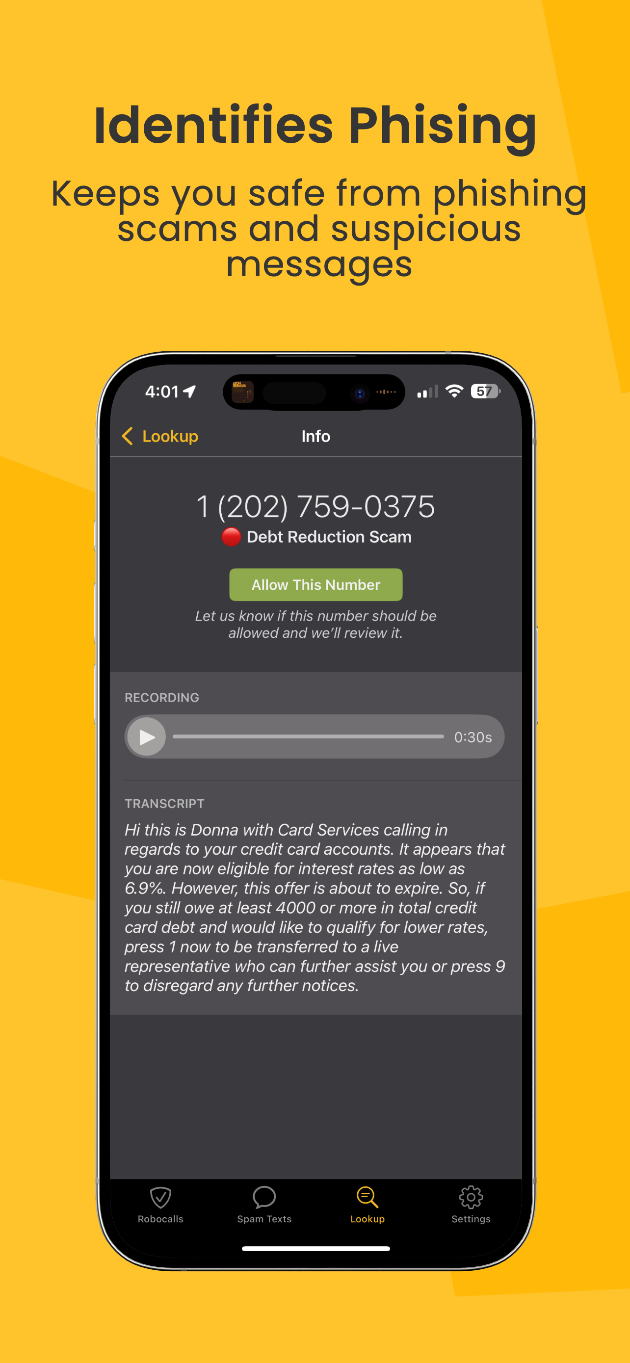 Blocks robocalls, telemarketers, and spam texts.