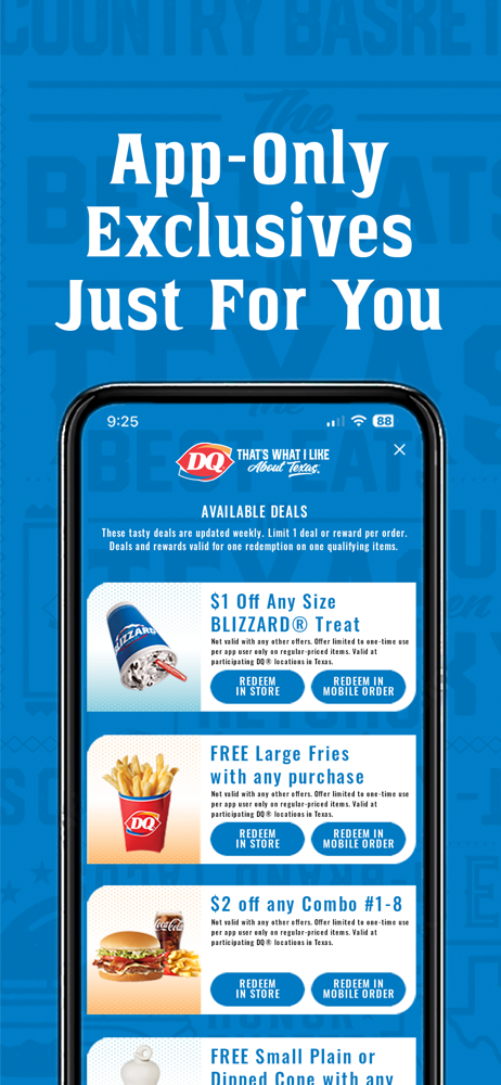 Earn rewards and find DQ Texas locations.
