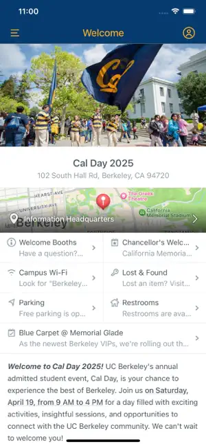 Navigates UC Berkeley events with schedules maps