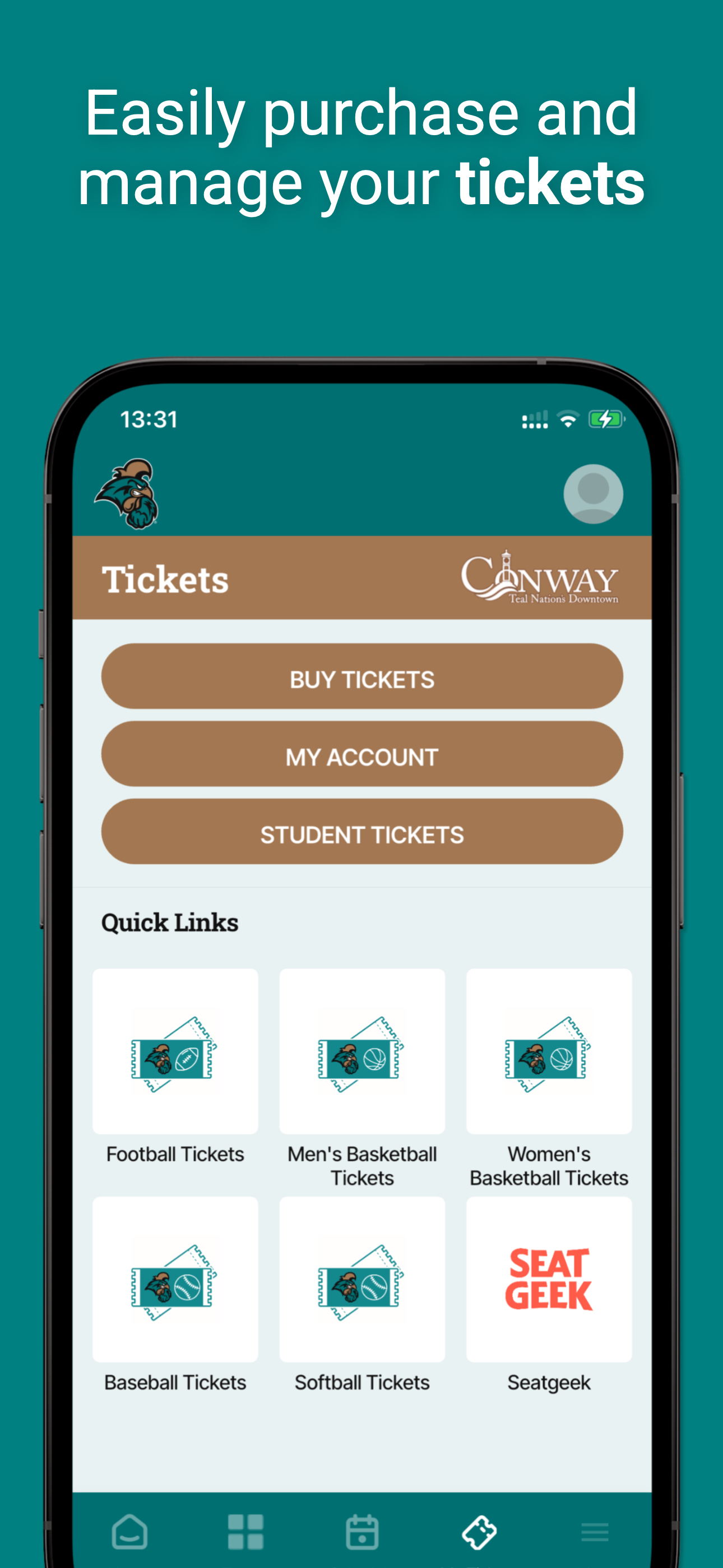 Manage tickets, receive updates, access promotions.